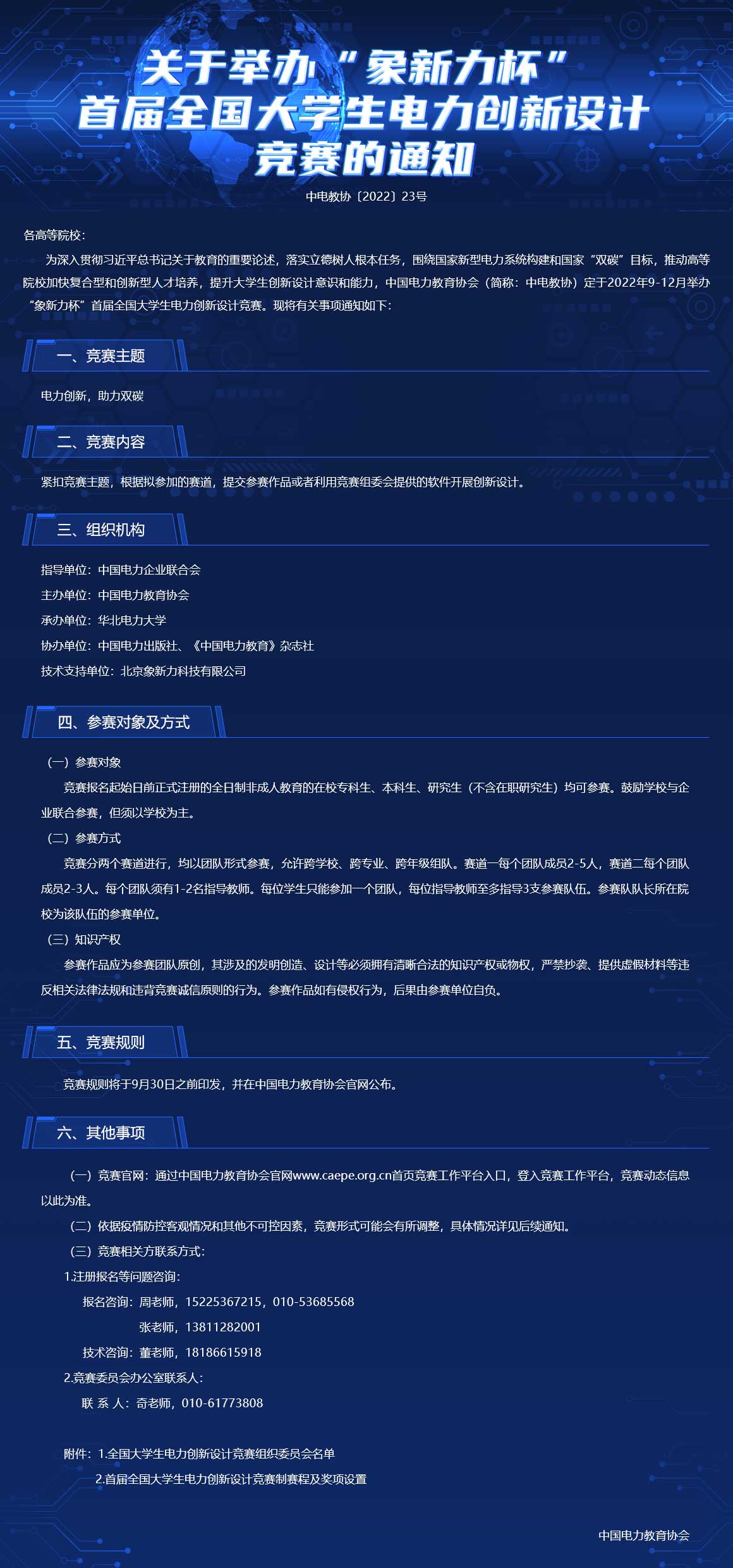 关于举办"象新力杯"首届全国大学生电力创新设计竞赛的通知