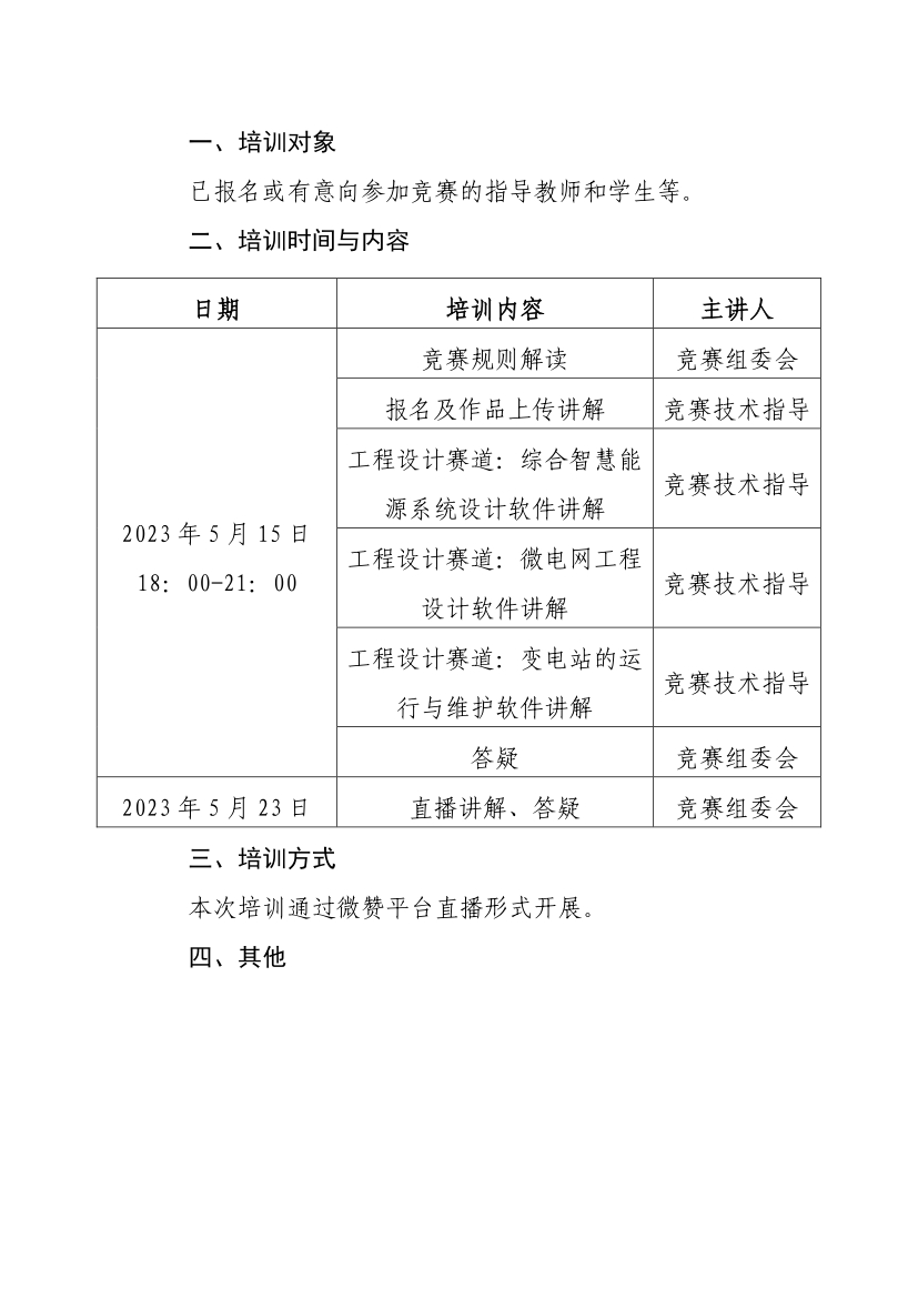 第二届全国大学生电力创新设计竞赛培训工作的通知