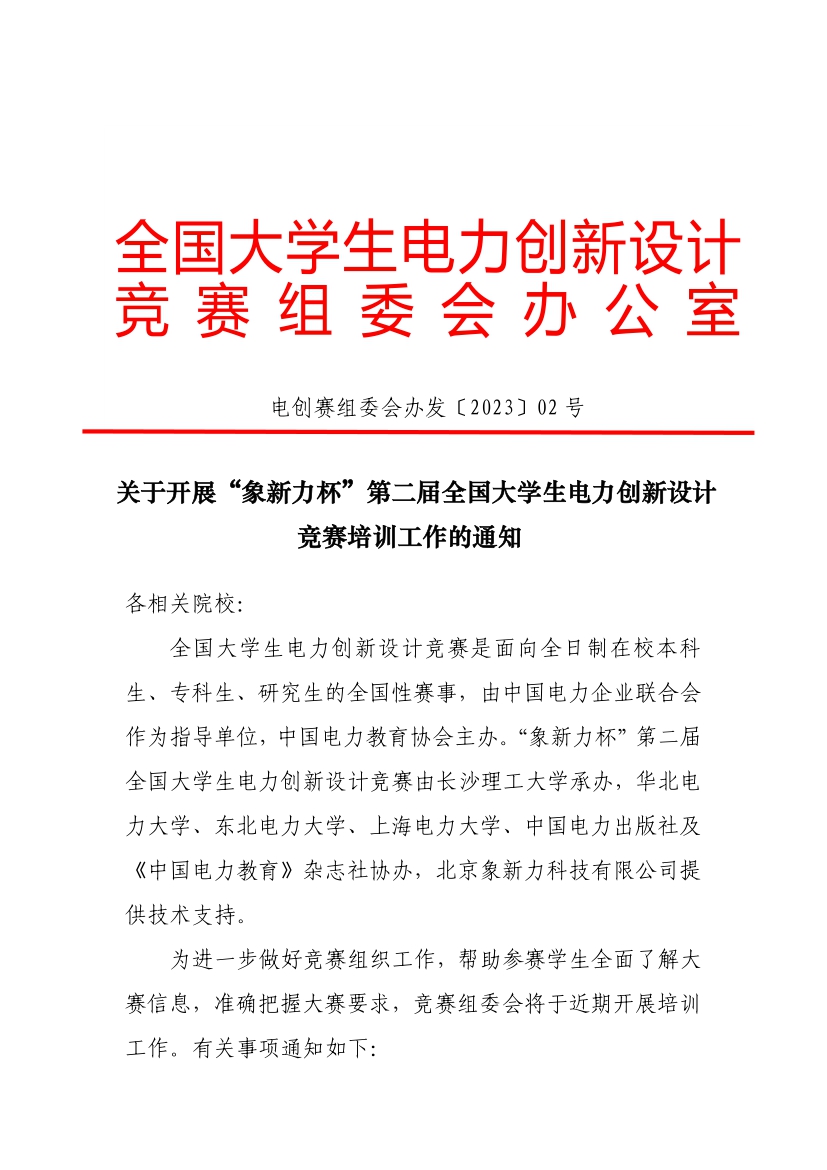 关于开展“象新力杯”第二届全国大学生电力创新设计竞赛培训工作的通知.pdf