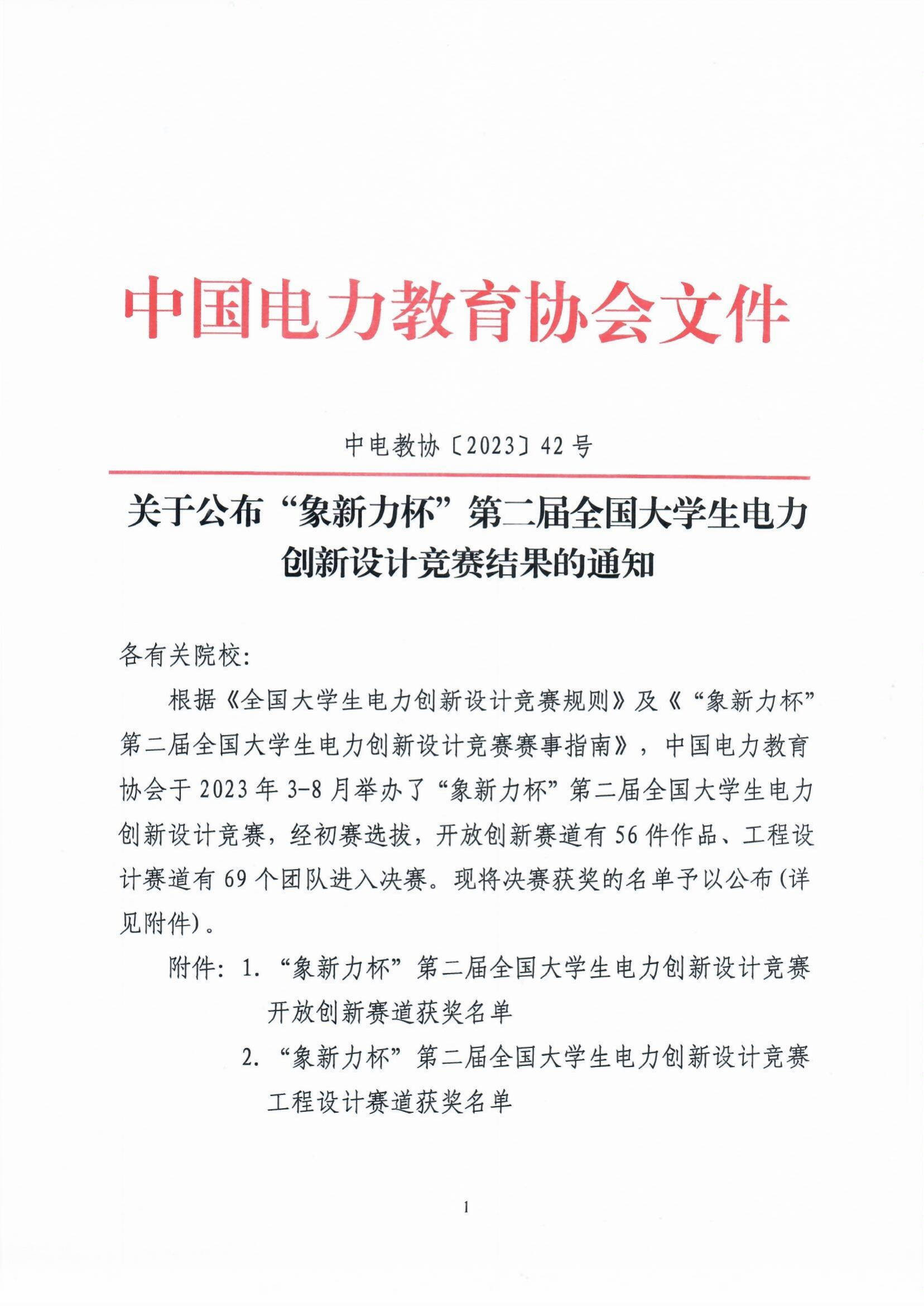 第二届全国大学生电力创新设计竞赛结果的通知 发布时间:2023-11-18 10:37 浏览量:768 附件:中电教协〔2023〕42号关于公布“象新力杯”第二届全国大学生电力创新设计竞赛结果的通知.pdf
