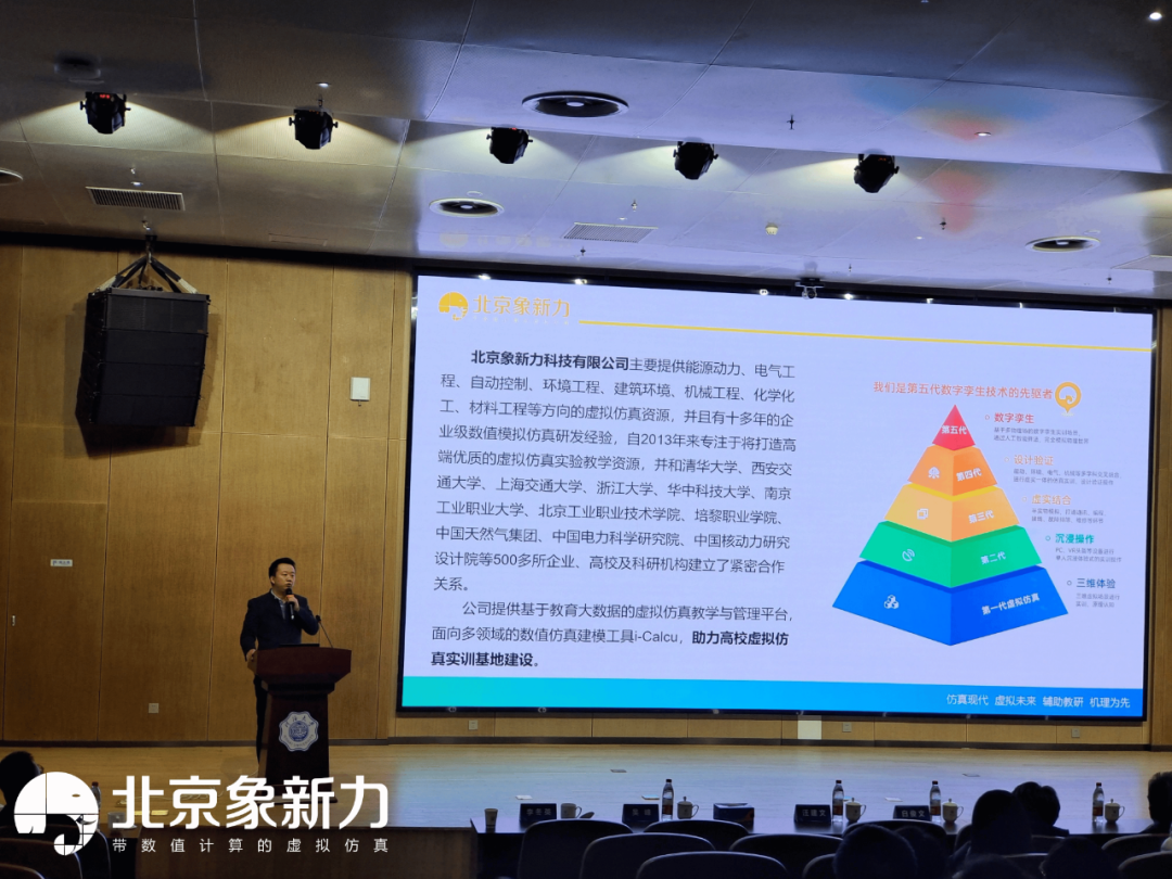 在会议上,北京象新力科技有限公司技术总监戴盼攀发表主题报告“新能源数智化虚拟仿真实训基地系统解决方案”。该报告从新能源数字化转型、智能化实训等多个方面出发,深入浅出地阐述了象新力科技的数智化虚拟仿真实训基地系统解决方案,该系统以“数字化、智能化、场景化、个性化”为核心,能够有效提升新能源领域的教育教学水平和培训质量,推动新能源产业的发展。