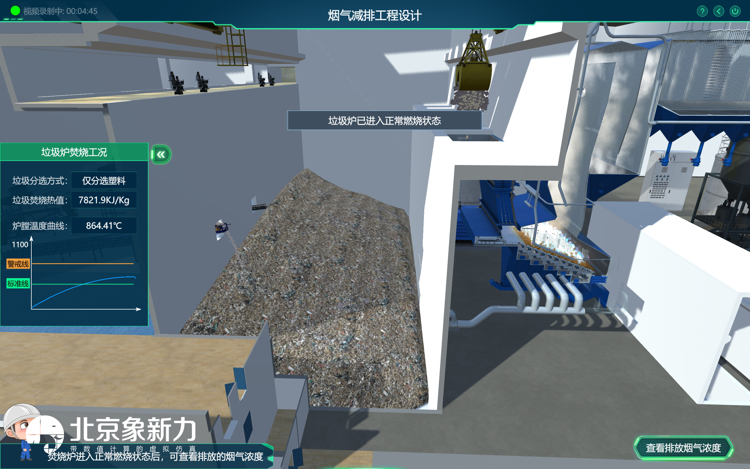 烟气减排工程设计模块 ,学生需先对垃圾入场、分选及焚烧进行了解,确定 进入烟气净化系统的烟气初始指标浓度。根据烟气初始指标浓度 ,选择合理的烟 气净化设备进行工艺搭建设计,搭建过程中要同时考虑搭建工艺的处理效率以及 经济合理性。
