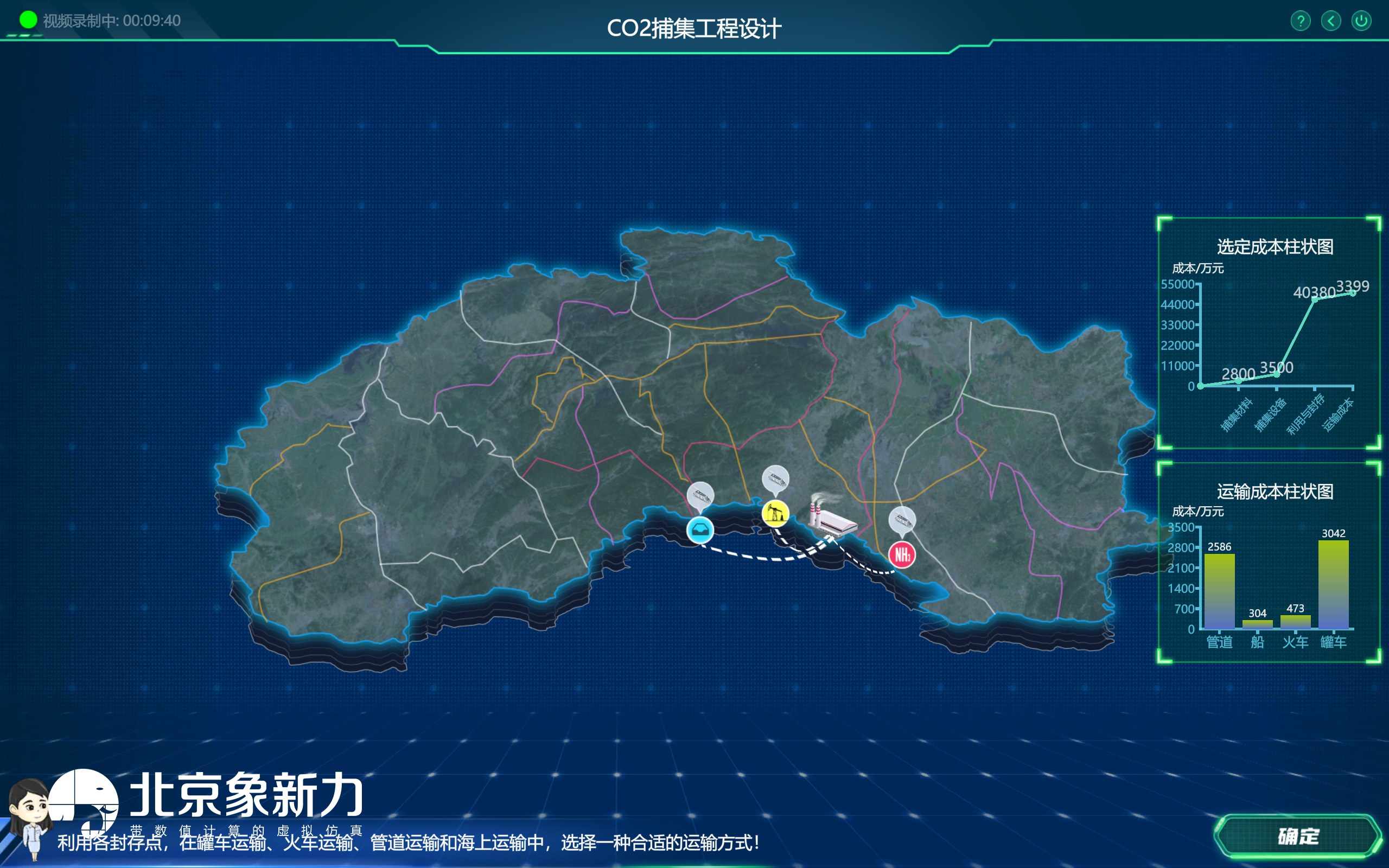 CO2 捕集工程设计模块,在了解 CCUS 工程和利用封存点的基本信息后,选 择 1 个 CCUS 工程开始工程设计。捕集工艺设计 ,需考虑捕集工艺方法、吸收/ 吸附剂、塔型等对捕集效率的影响及设计工艺的经济性。利用封存工艺设计 ,需 考虑利用封存方式所需的成本、产生的效益及运输方式等因素。