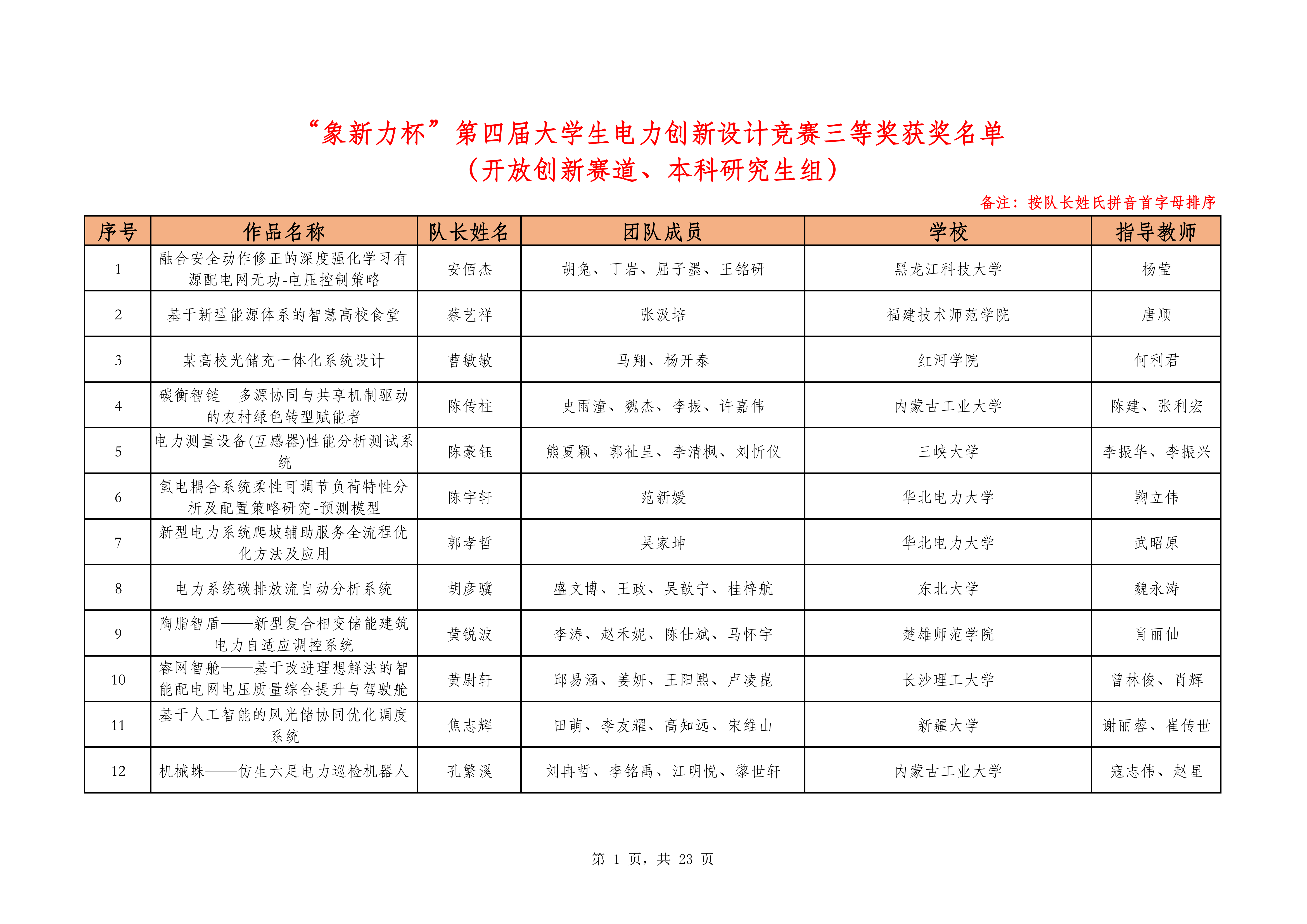 “象新力杯”第四届大学生电力创新设计竞赛,自2025年3月启动以来,受到各大高校师生的广泛关注和积极参与,现将决赛名单及三等奖获奖名单予以公示。