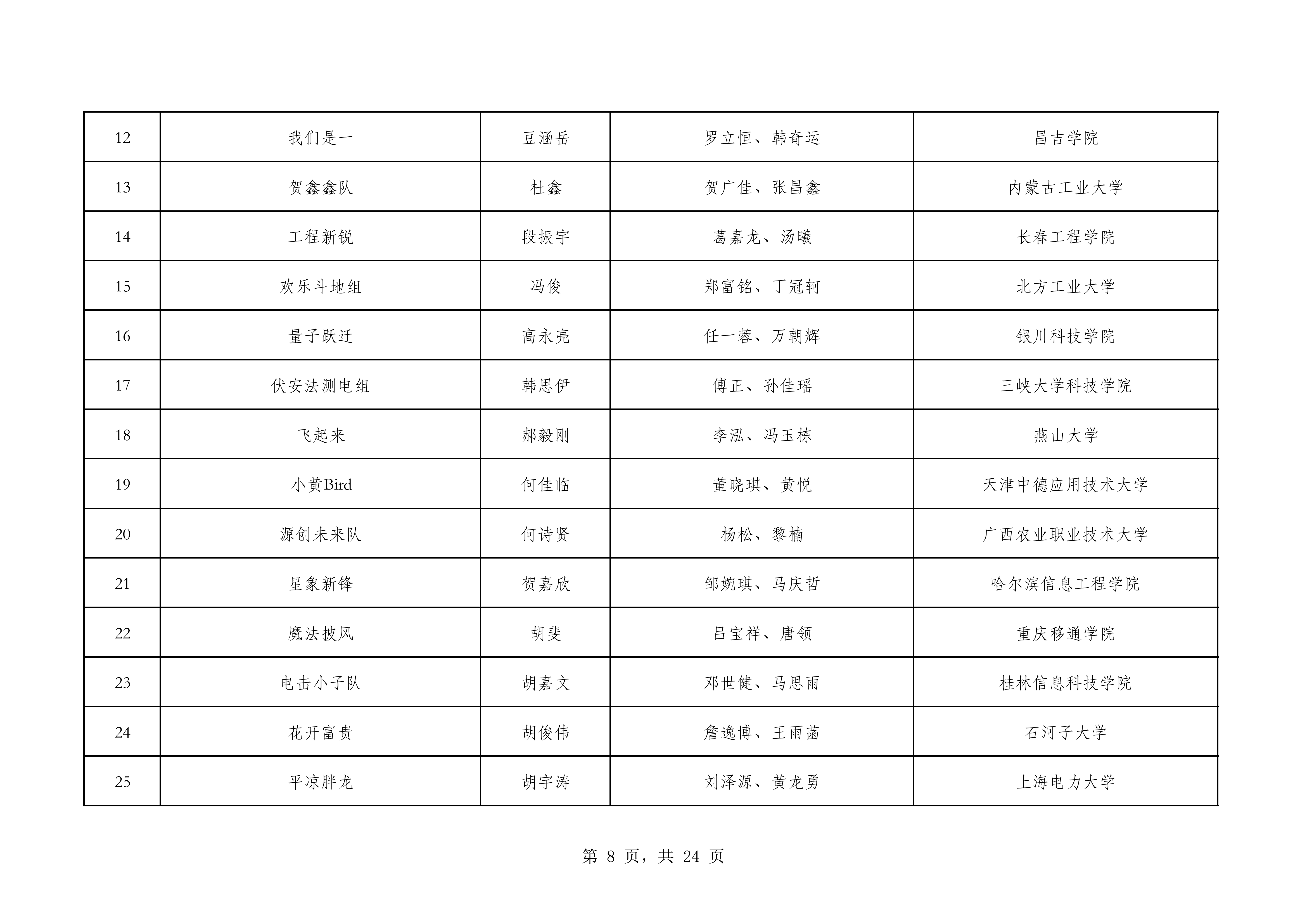 一、决赛名单