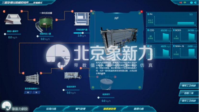 北京象新力根据《三废处理工程技术手册》等课程的教学内容,以国内先进的生活垃圾处理处置方法为设计原型,研发了环境工程三废处理虚拟仿真软件,模拟实际的垃圾焚烧工艺,以及二次污染物处理工艺,提供真实的工程场景实验平台,提高学生实际工程能力,培养创新意识。