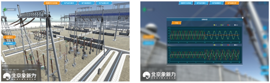 软件以国内某电厂 1000MW 火力发电机组为原型,运用大型发电机组电气运行虚仿实验相关技术,根据其发电、变电、输电整个电力系统运行参数搭建了详细的电力系统运行仿真模型,保证了实验数据的真实性和正确性。在虚拟 3D 环境中对多种电力设备进行了程序化属性嵌入,比如发电机、断路器等的设备参数,当鼠标点击可详细呈现出来,让学生能够直观地了解大型电力设备电气运行虚拟实验的细节。通过模拟真实机组的运行,向学生展示并网前后,励磁调节系统、调速系统各调节参数对发电机的影响,开展发电机组电气运行动态仿真试验,使学生深入掌握发电机组电气运行状态模拟分析的方法。操作票的开具完全遵守相关操作手册,严格按照电力系统实际工作过程履行逐级审批签字手续,使学生得到最贴近工程实践的训练,如同亲身参与到大型发电机组电气运行测试虚拟实验中。设置了线路常见的故障类型,对于不同故障类型,分别内置了对应的故障波形,可根据不同的故障波形,反向分析线路发生了何种故障,进行大型发电机组电气故障仿真研究。还包含继电保护重合闸知识的学习,可使学生观察在不同模式下,发生不同类型故障时,断路器的工作方式,开展发电机组电气运行故障模拟实验。