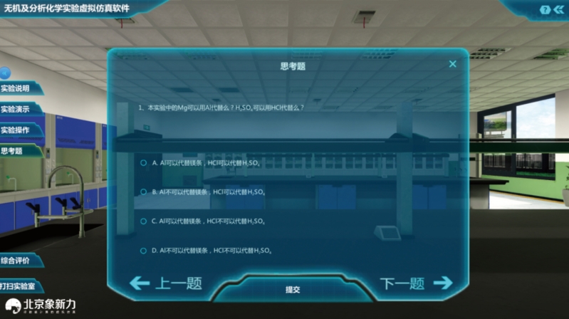 (2)对真实实验室进行完整的三维建模,学生除了进行实验内容操作,还要学习实验室安全及规范,陪养学生良好的实验习惯。