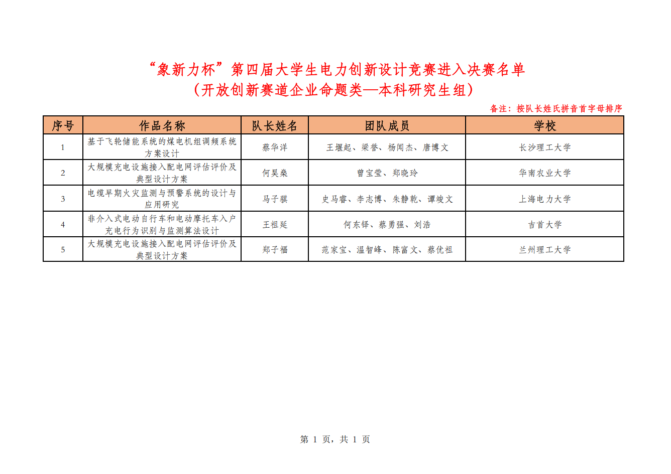 附件:“象新力杯”第四届大学生电力创新设计竞赛开放创新赛道企业命题类进入决赛名单.pdf