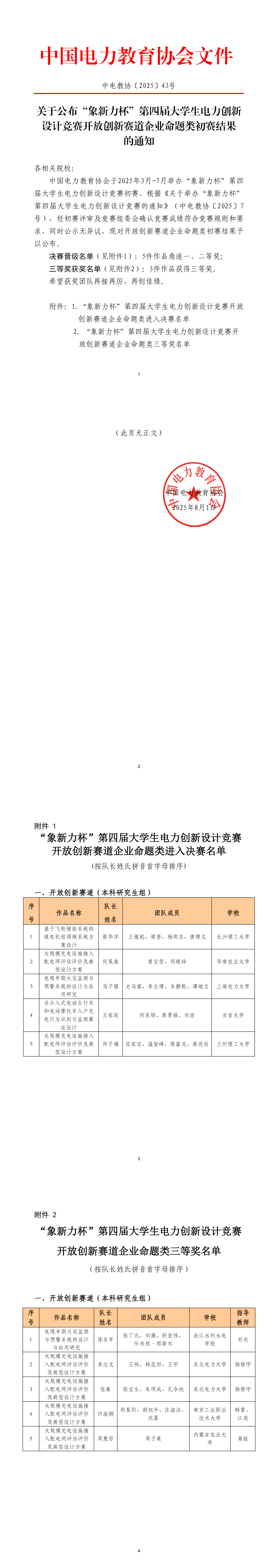 第四届大学生电力创新设计竞赛开放创新赛道企业命题类初赛结果 发布时间:2025-08-01 11:39 浏览量:398 附件:中电教协〔2025〕43号关于公布“象新力杯”第四届大学生电力创新设计竞赛开放创新赛道企业命题类初赛结果的通知.pdf