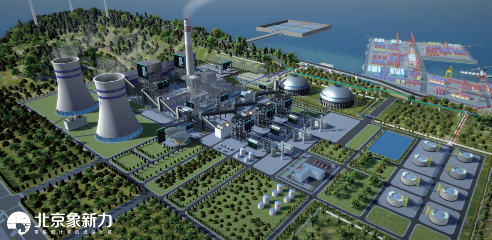 本项目利用三维虚拟现实技术,以背山面海的地理场景搭建未来能源工厂的三维虚拟模型,能源工厂生产的电、天然气、热、水通过管网送往远处的一个虚拟城市(远景),海面具有LNG船及煤炭运输船,同时在仿真运行管理后台和仿真机里模型软件的支持下,提供从场景到内部结构,操作到实时数据的一体化教学仿真解决方案。同时将设备的结构原理等知识点穿插到本软件中,用户可以一边操作,一边看到现象,同时学习相关的原理。本系统知识点展现环节重点包括包括实时燃料消耗、输出功率、发电效率、污染物排放指标、碳排放指标。