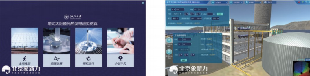 效率云图功能形象直观地表现镜场的工作状态,与科研工作有很大交集,便于学生对镜场的工作状态有感性认识。仿真技术和动作捕捉技术让学生在沉浸式环境中身临其境地观察光热发电厂的全景,并通过动作进行交互,增加了教学的高效性和趣味性。