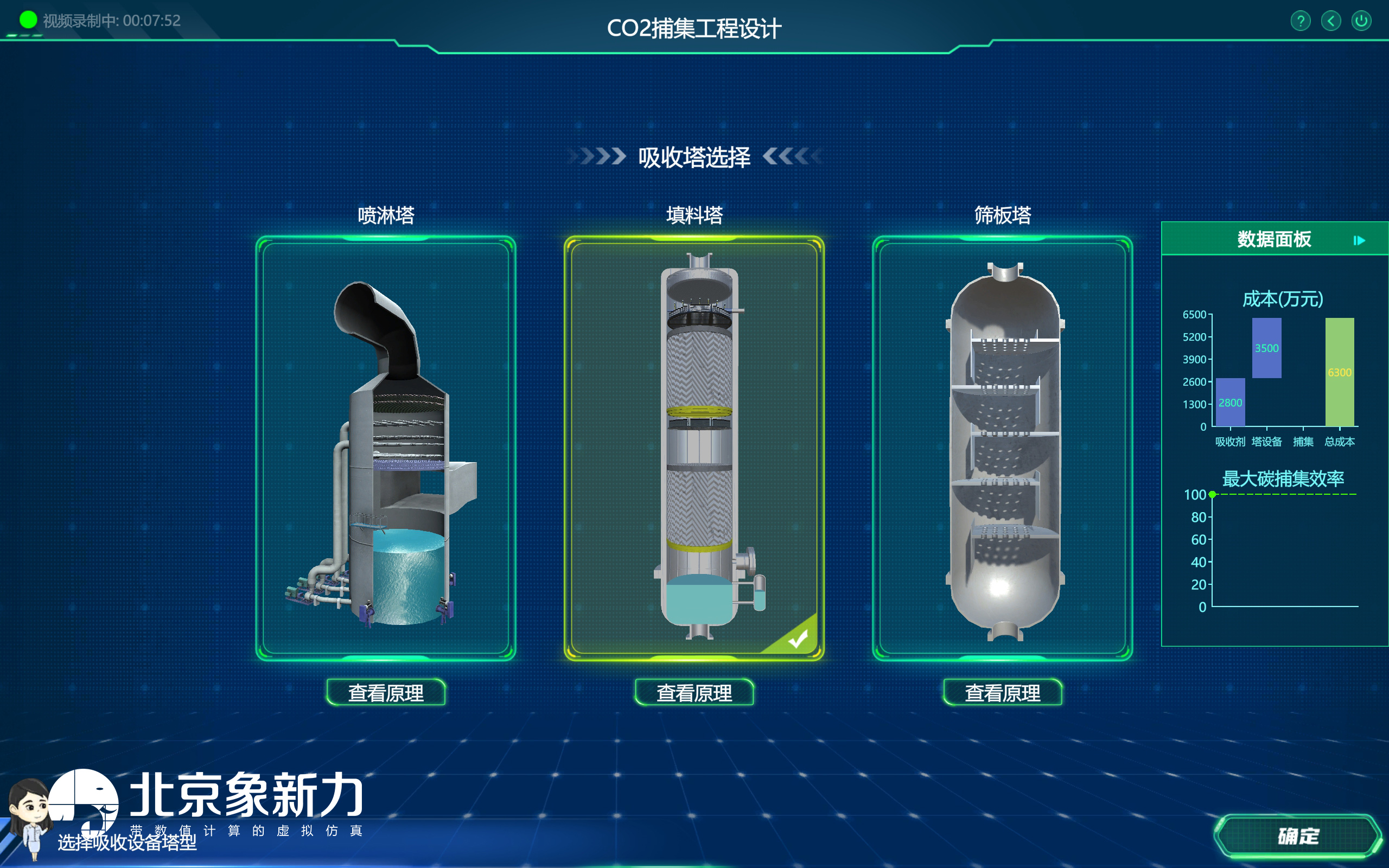 CO2 捕集工程设计模块,在了解 CCUS 工程和利用封存点的基本信息后,选 择 1 个 CCUS 工程开始工程设计。捕集工艺设计 ,需考虑捕集工艺方法、吸收/ 吸附剂、塔型等对捕集效率的影响及设计工艺的经济性。利用封存工艺设计 ,需 考虑利用封存方式所需的成本、产生的效益及运输方式等因素。