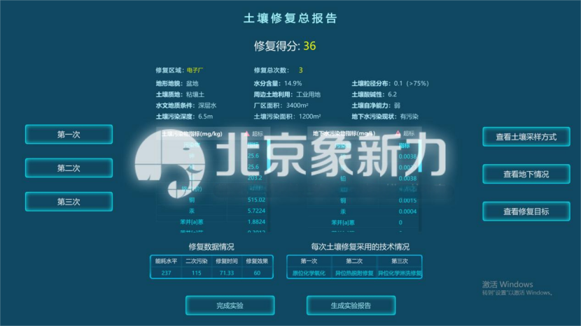 北京象新力围绕《土壤污染控制与修复》、《环境工程学》等课程的教学内容,以不同类型污染场地和修复技术为原型,研发了污染场地修复虚拟仿真软件,为学生和教师提供一个高度仿真的污染场地修复实验平台。