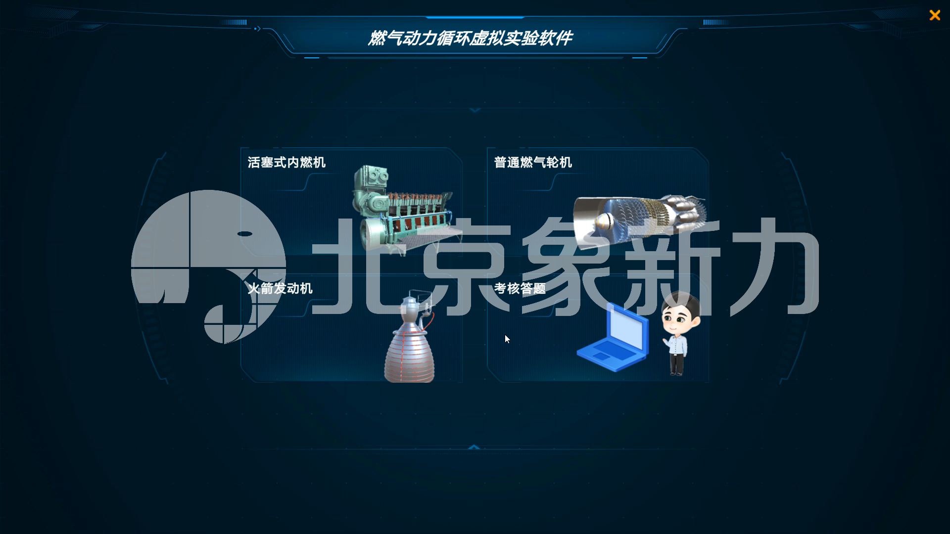 软件实验共分为活塞式内燃机、燃气轮机、火箭发动机和考核答题四个部分。