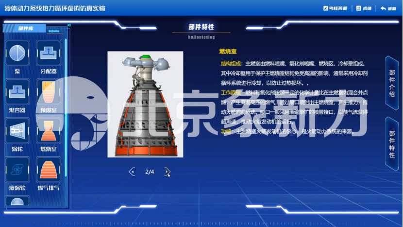 本软件通过MAYA+UNITY三维解决方案制作3D内部结构及工作原理动画,可让学生全方位立体模拟火箭发动机动力循环的结构、特点、功能,直观、详实、全方位动态了解设备功能及特点。