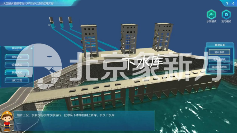 在“双碳”目标驱动下,抽水蓄能作为构建新型电力系统的“超级充电宝”,正迎来黄金发展期——国家能源局《抽水蓄能中长期发展规划》明确要求,到2030年抽水蓄能投产总规模达到1.2亿千瓦左右。行业的井喷式增长背后面临的是专业运维人才的巨大缺口。北京象新力通过充分调研,研发“抽水蓄能电站认知及运行虚拟仿真软件”,让学生可以在安全可控的虚拟环境中,进行各种实训操作,深入了解水电站建设和运行的各个环节,包括设备操作、并网调试等。