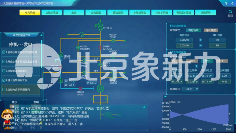 “设备认知”模块可学习水泵水轮机、发电电动机、主变等电气设备的功能和结构。