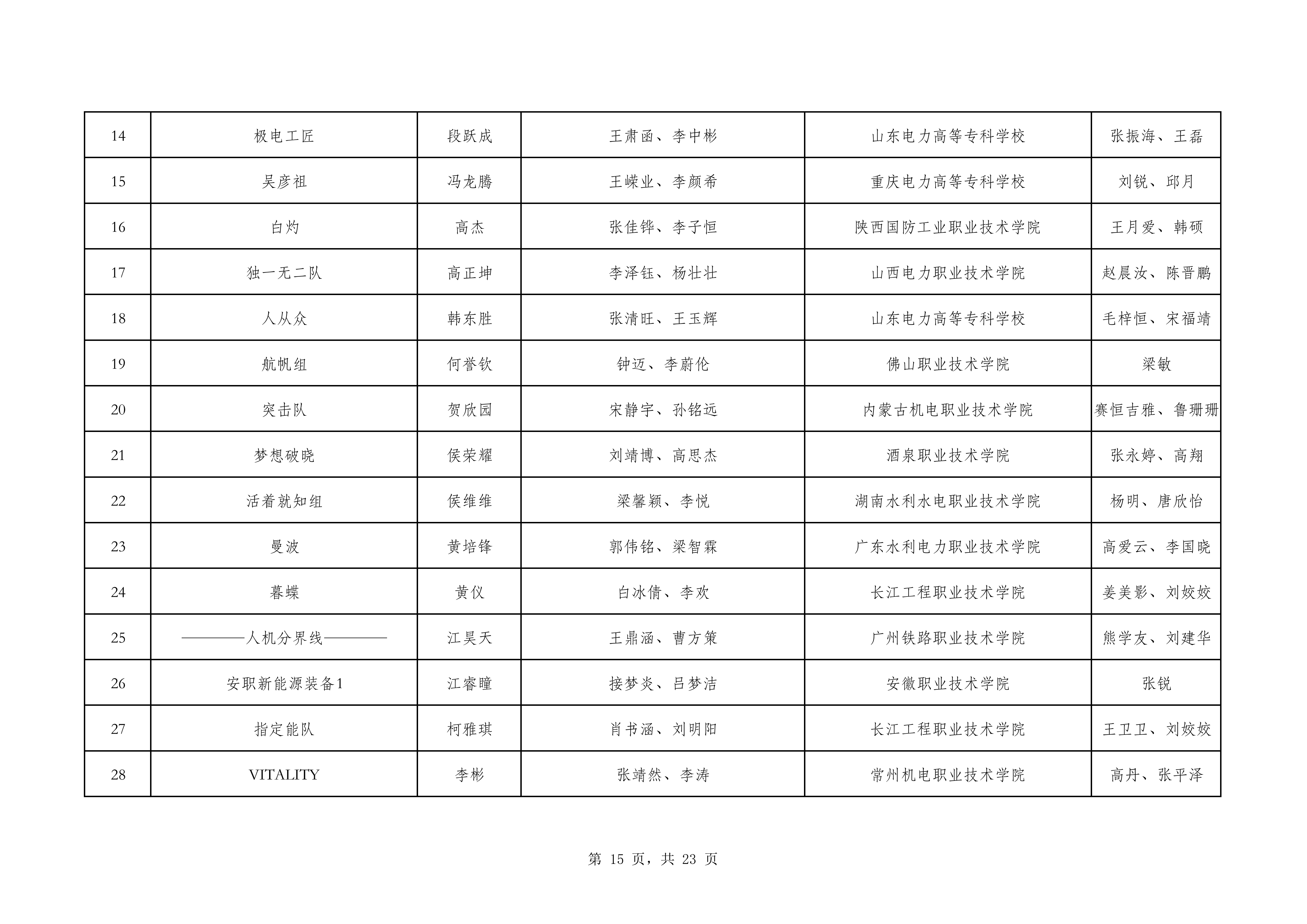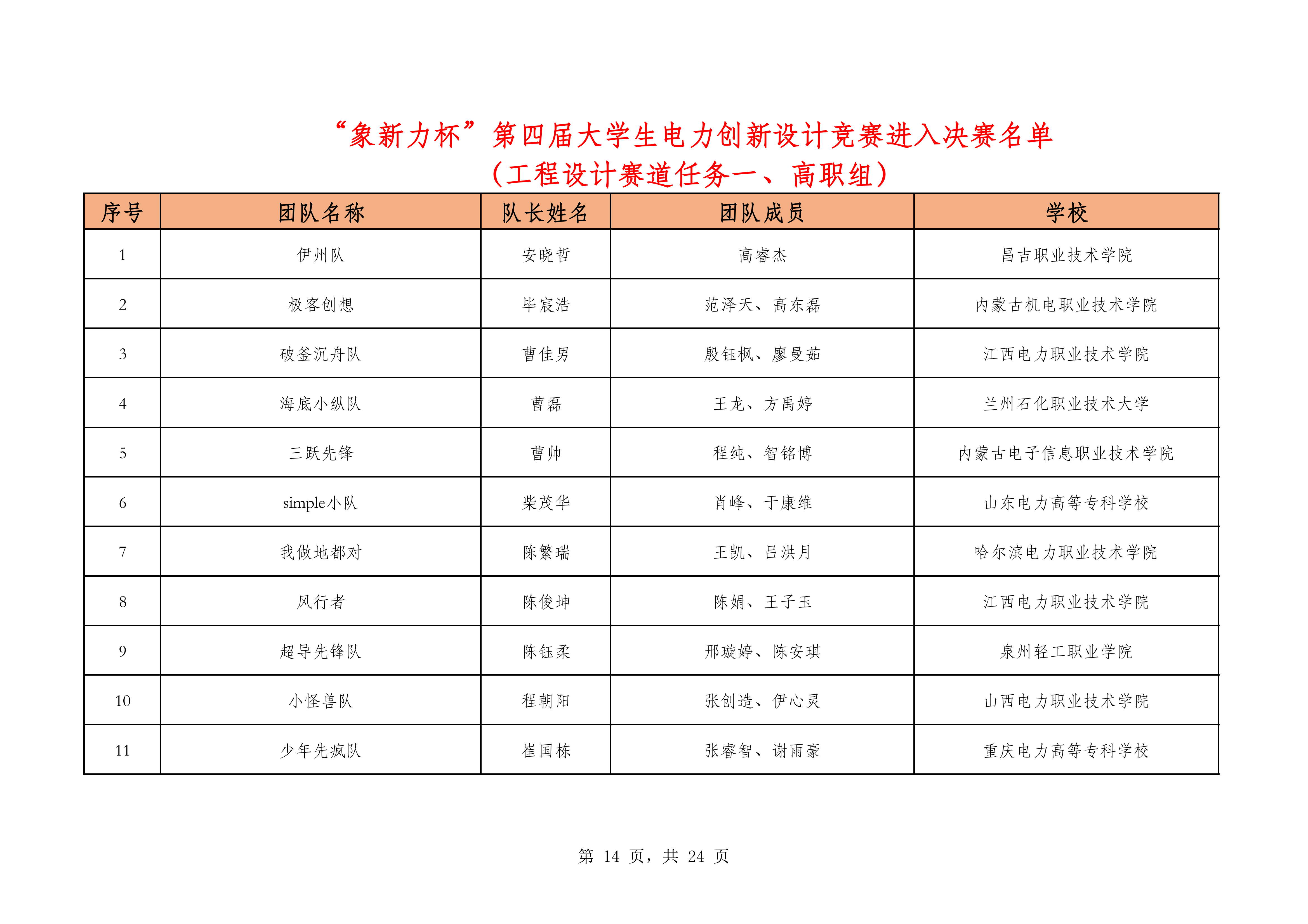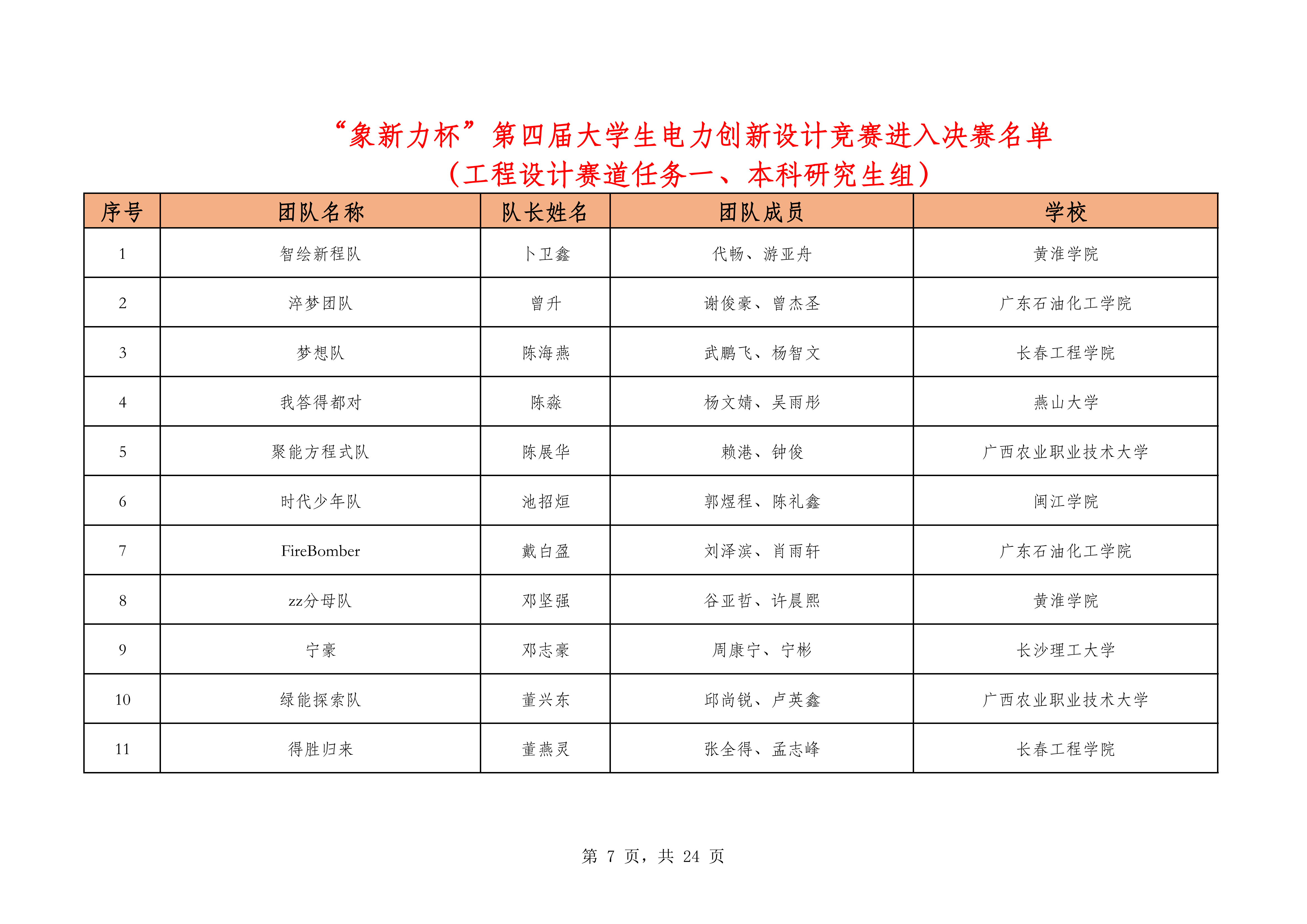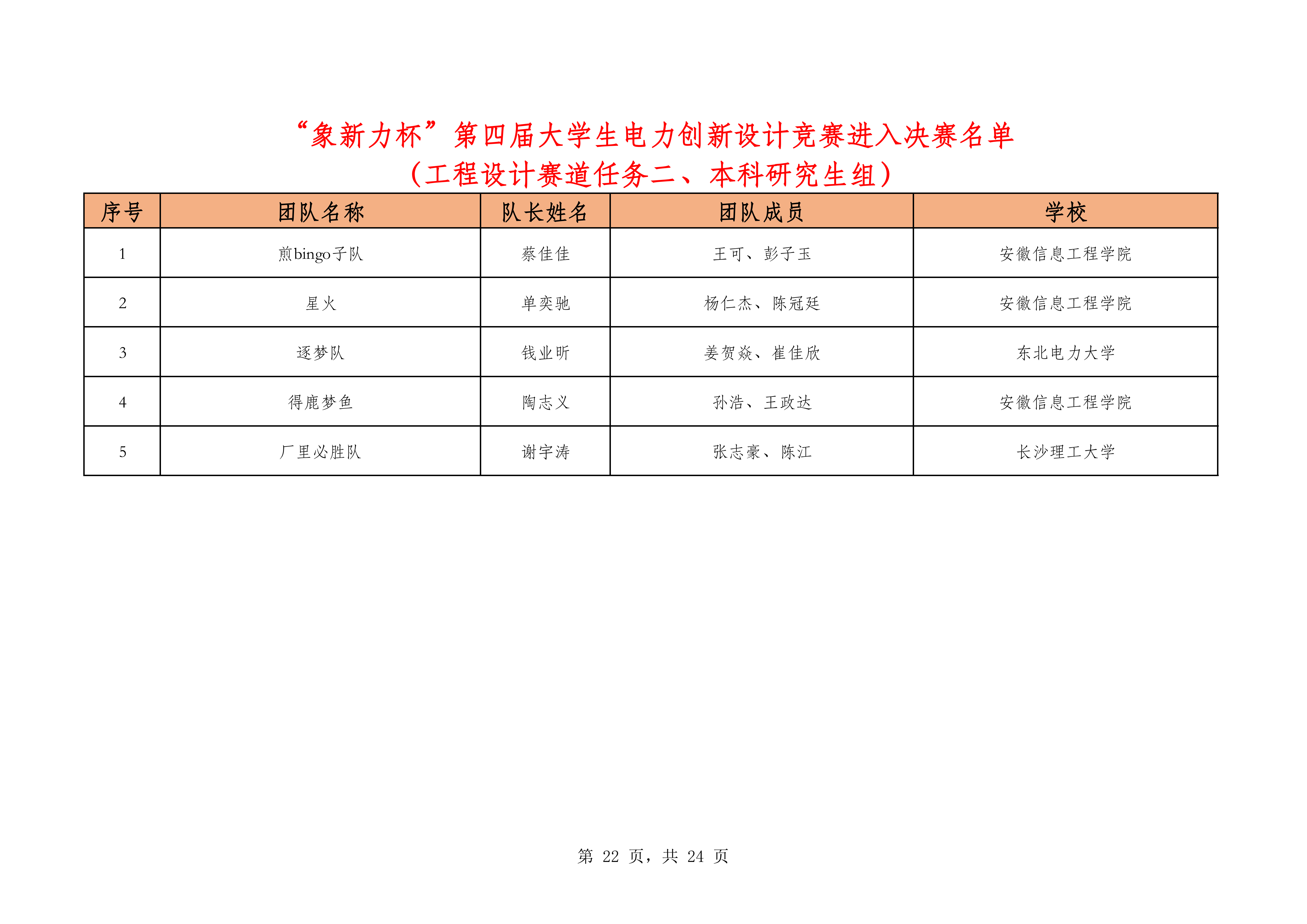 一、决赛名单