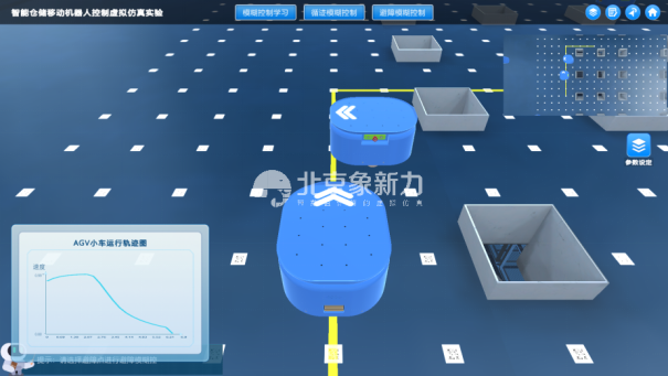 用户选择“AGV 运动控制”模块,系统会介绍模糊控制相关的知识点,并进行循迹模糊控制、避障模糊控制实验,用户可以查看运行结果并对规则表进行优化重新开始运行。