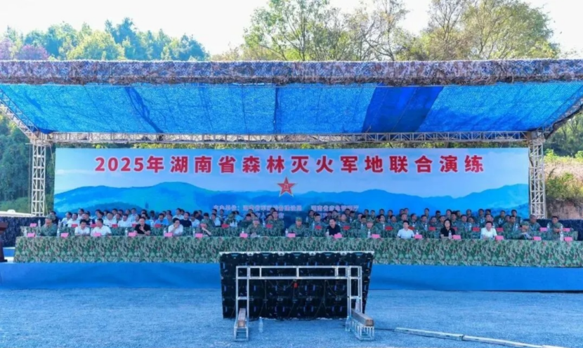 10月10日,2025年湖南省森林灭火军地联合演练在永州祁阳举行。省军区司令员林佳春出席并讲话,市委书记朱洪武致辞。