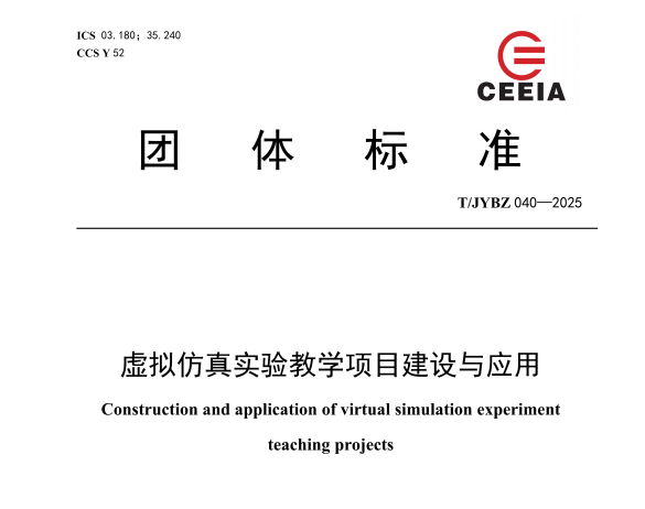 近日,在教育部高教司的指导下,由虚拟仿真实验教学创新联盟技术工作委员会和中国教育装备行业协会高教装备分会牵头组织编写的《虚拟仿真实验教学项目建设与应用》团体标准(T/JYBZ 040—2025)正式实施!该标准旨在进一步规范虚拟仿真实验教学项目建设,加强应用与共享,推动形成虚拟仿真实验教学技术领域的中国标准体系,引导和支持高校建设符合新时代人才培养要求的虚拟仿真实验教学项目。