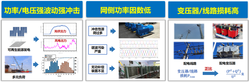 在“碳达峰、碳中和”的国家战略目标驱动下,构建以新能源为主体的新型电力系统已成为能源转型的核心任务。然而,风电、光伏等可再生能源的大规模接入,使得电力系统从传统的“源随荷动”单向模式,转变为源、荷双侧均具有高度不确定性的复杂系统。这种变革在推动绿色发展的同时,也带来了严峻挑战:配电系统潮流方向多变,引发功率与电压的剧烈波动;系统功率因数降低,变压器与线路损耗显著增加,最终导致电能质量下降与运行经济性恶化。