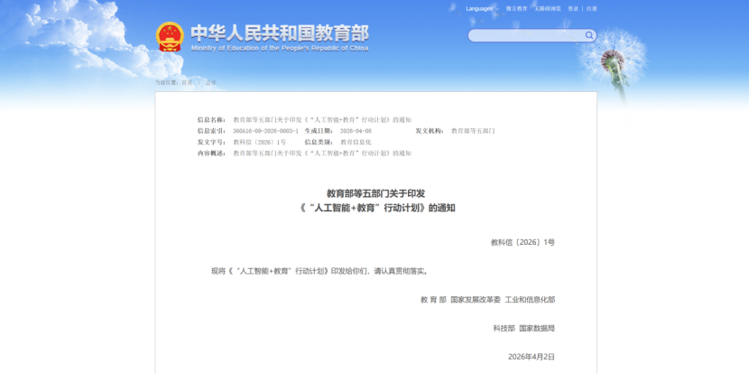 近日,教育部等五部门联合发布《“人工智能+教育”行动计划》,明确提出到2030年基本形成人工智能与教育深度融合的格局,构建覆盖全民的人工智能教育体系,推动教学模式、学习方式、评价机制的系统性变革。