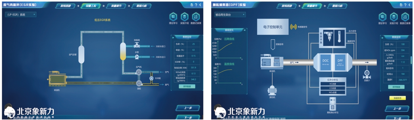 实验模块包含废气再循环实验 (EGR)、选择性催化还原实验 (SCR)、颗粒捕集器实验 (DPF) 3 部分组成。通过对比分析实验记录不同工况下多组数据,然后绘制曲线图进行超低排放效果研究。这一过程涉及到船舶柴油机虚仿实验的数据收集和数据分析,是整个实验的核心环节。在船舶柴油机虚仿实验步骤详解中,这些数据收集和分析步骤都需要严格按照规范进行,以确保实验结果的准确性。而对于船舶柴油机虚仿实验结果解读,科研人员和学生可以根据这些数据和曲线,深入了解柴油机的排放特性和控制效果。