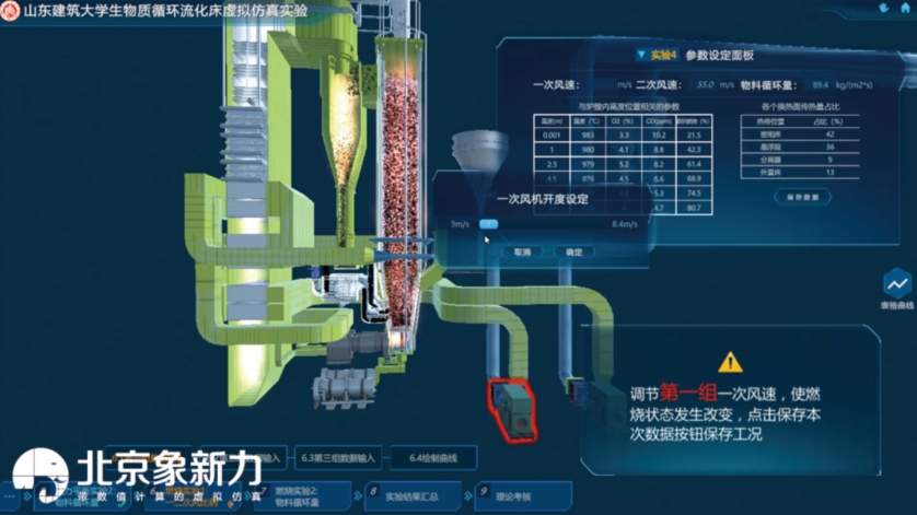 本实验采用三维动画形式,使学生直观深入地了解可再生能源典型代表之一的 “生物质燃料” 特点。在垃圾处理与循环流化床发电效率的研究中,了解生物质燃料特点是基础。通过循环流化床三维动画演示及三维虚拟仿真平台,形象直观地将循环流化床主要运行工况及参数展示给学生,这就如同展示垃圾发电厂的循环流化床实验过程。这有利于学生将课本知识与仿真模型融合贯通,解决学生对循环流化床流化状态、压力平衡等概念的疑惑,进一步加深学生对循环流化床锅炉专业知识的理解和掌握,为后续研究循环流化床在垃圾发电中的应用研究奠定基础。