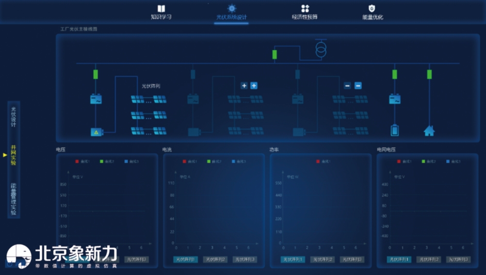 在实验方面,涵盖了多个关键内容。微电网学习、风力发电系统学习、风机的 MPPT 控制策略、并网型光伏发电系统学习、光伏的 MPPT 控制策略、储能系统、微电网潮流计算以及微电网潮流设计等。这些实验内容是光伏电站设计与优化的重要组成部分,通过虚拟仿真实验在光伏设计中的应用,让使用者能够深入了解光伏电站的运行原理和优化方法。