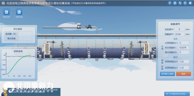 本项目面向《过程控制技术与系统》等课程,致力于建设发电过程典型热工系统动态特性及控制系统设计虚拟仿真实验平台。该平台采用先进的三维虚拟仿真技术,构建了与实际电厂过热蒸汽温度产生、电厂锅炉汽包水位控制等过程高度一致的虚拟环境。产品涵盖了系统组成、测点选取、设备选型、设备安装调试及控制器参数整定与调节等丰富的实验交互环节,充分体现了发电过程控制系统的虚拟仿真方法。