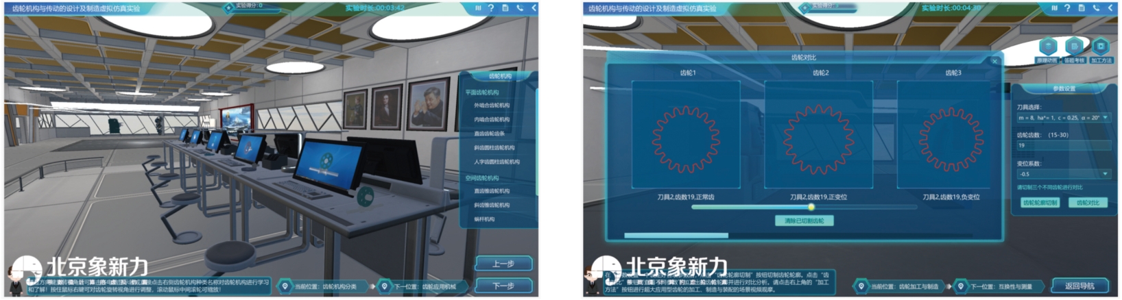 软件的实验内容丰富多样,涵盖了各类平面和空间齿轮机构的结构及典型机构应用、齿轮的基本参数、齿轮结构几何尺寸的计算方法、简单的齿轮机构设计、齿轮的加工过程、形位公差、极限与偏差、齿轮相关的测量仪器、齿轮精度公差组等。在齿轮制造过程中,仿真分析的重要性不言而喻,齿轮制造与虚拟仿真技术的结合,以及齿轮制造工艺与虚拟仿真结合,都能让学生更好地理解和掌握相关知识。