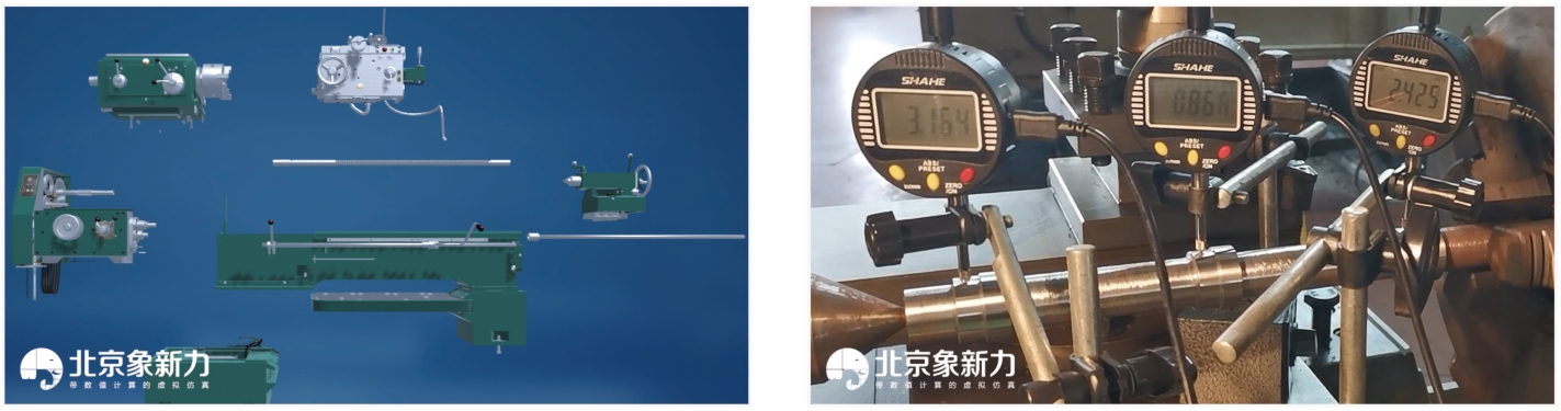 该模块借助由 “机床 - 夹具 - 工件 - 刀具” 3D 模型所组成的虚拟仿真工艺系统,能让使用者加深对工艺系统刚度等概念的理解,同时可以分析影响机床刚度的各个因素。在进行机床静刚度测定时,通过虚拟仿真操作对工艺系统不同部位的受力变形量进行测量,然后分别求出被测机床的床头部件(头架)、尾架部件、刀架部件的刚度值,据此计算出机床的刚度,并进一步分析在不同的力作用下各部件变形量的变化情况及规律。这一过程与实际的机床静刚度测定方法相契合,为使用者提供了真实有效的实验体验。