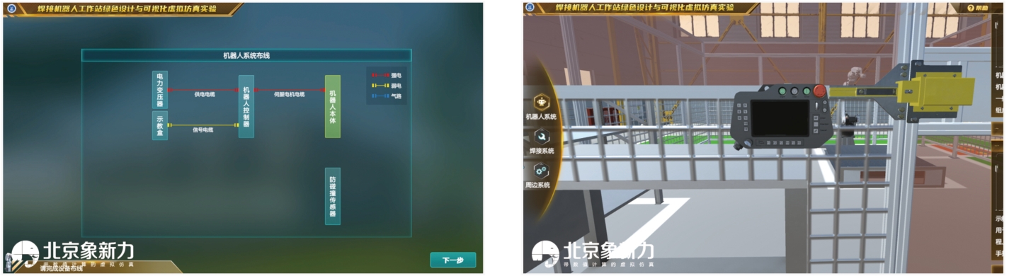 本系统既包含了机器人系统认知、机器人安全认知、设备布线、工具坐标系设置等通用机器人知识。同时软件设计了骑坐式管 - 板 T 形接头机器人船形焊实训典型弧焊相关的实训模块。每个模块均包含有学习和考核两种模式,有效帮助用户掌握机器人相关知识,锻炼机器人安装、调试相关技能,助力培养工业机器人技术高素质应用型人才。软件的可视化设计,如可视化焊接机器人培训系统设计,让学生能更直观地学习焊接知识。而且,软件中融入了虚拟仿真技术在焊接机器人中的应用,通过虚拟仿真焊接机器人工作站优化,让学生在虚拟环境中进行焊接工艺的虚拟实验与实践。