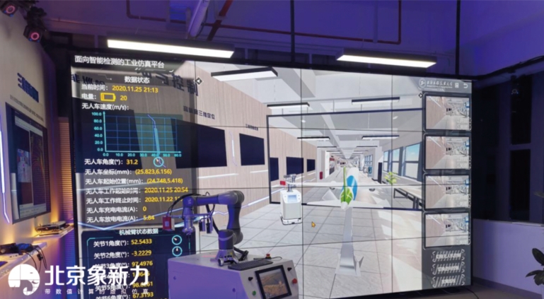 该项目将 5G、WiFi、无人机、无人车、六轴机器人、软硬件接口协议开发等相关技术进行了深入研发及融合,充分发挥了数字孪生技术在智能检测中的应用优势。它实现了虚拟到现实、现实到虚拟的虚拟结合对应及控制功能,可展现 VR/MR、虚实结合控制、飞机故障巡检、视觉检测分析、路径规划等多种功能。项目分为无人车巡检和无人机巡检两种巡检方式,巡检对象为国产大飞机。这种创新的巡检方式,正是利用数字孪生技术进行智能检测的典型案例,大大提高了飞机故障检测的效率和准确性。