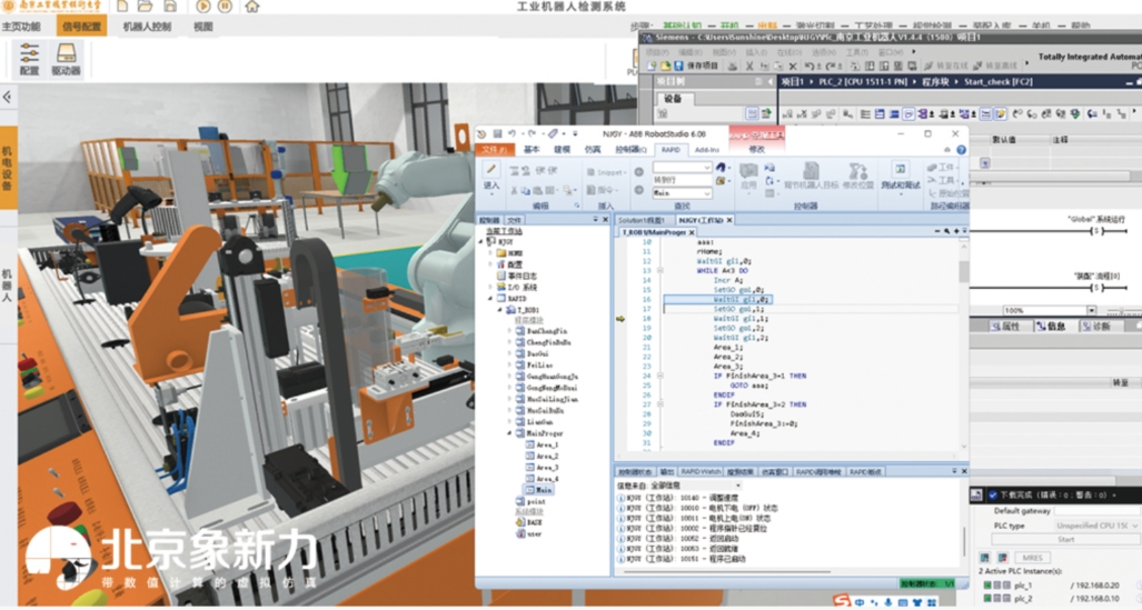 软件结合虚拟仿真技术,将成本较高、占地面积大,操作复杂的多工艺工作站进行虚拟化。这一过程涉及多工艺工作站数字孪生技术解析和多工艺工作站的数字孪生模型构建。通过相关技术,系统打通与 PLC 和 Robotstudio 的数据通讯,实现多工艺工作站的实控虚和虚控虚功能。用户不仅可以在操作实际工作站时,在虚拟场景中同步获取 PLC 和机器人的相关数据进行场景模型的同步控制,还可以通过博图和 robotstudio 等软件,对场景模型进行对应控制。这种方式有助于实现工业自动化中的数字孪生解决方案,优化多工艺工作站的工作流程,提升生产效率,是数字孪生技术在现有工作站的应用转型的成功实践。
