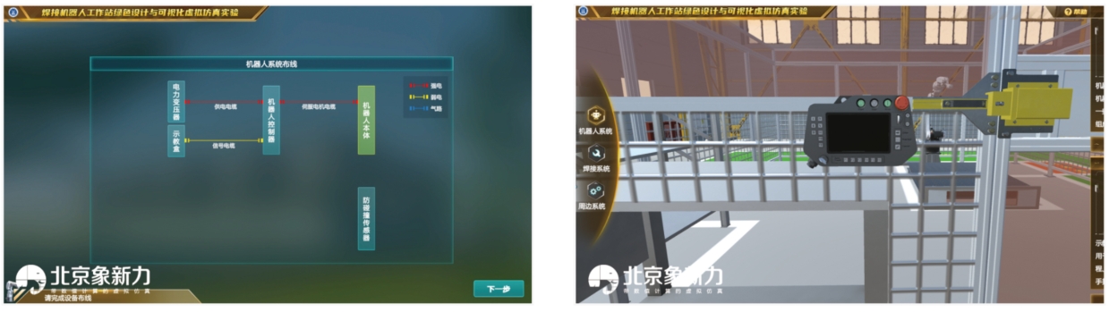 本系统既包含了机器人系统认知、机器人安全认知、设备布线、工具坐标系设置等通用机器人知识。同时软件设计了骑坐式管 - 板 T 形接头机器人船形焊实训典型弧焊相关的实训模块。从智能焊接工作站绿色设计理念出发,每个模块均包含有学习和考核两种模式,有效帮助用户掌握机器人相关知识,锻炼机器人安装、调试相关技能,助力培养工业机器人技术高素质应用型人才。可视化技术在其中也得到了充分应用,如可视化智能焊接工作站效果图能让学生更直观地了解焊接工作站的布局和运行情况,可视化焊接工作站的实现方法和可视化技术提升焊接工作站效率等方面也有所体现,其焊接工作站的可视化控制系统更是保障了操作的便捷性和准确性。
