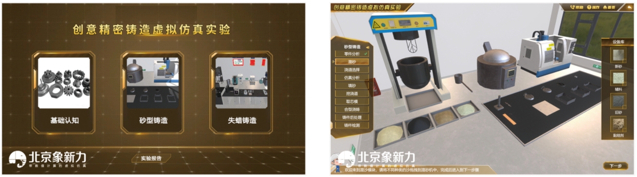 通过虚拟仿真技术,该项目逼真再现铸造现场场景,对生产流程进行工艺拆解,为学生提供了安全、全面的铸造实践教学。在教学模式上,采用 “虚实结合、相互结合,能实不虚” 的线上线下混合式教学,将创新教育和工程教学有机结合。这不仅符合创意精密铸造的设计流程,也有助于学生的实践能力、创新能力得到锻炼,培养符合时代发展需要的新工科应用型人才。同时,该项目也关注到了创意精密铸造的成本控制策略以及行业标准与规范,让学生在学习过程中树立正确的成本意识和质量意识。
