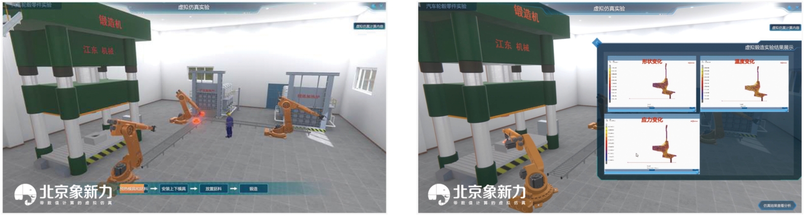 本实验项目以真实实验室设备及场景为对象,完全还原实验细节,将锻造实验操作的流程场景虚拟与测试结果仿真计算相结合。学生在虚拟实验平台上学习实验原理及操作方法,同时掌握各种锻造指标及不同材料的性能差异。通过这种方式,学生可以更深入地了解零件热锻中的变形工艺分析、热锻成形对材料性能的影响等知识。在虚拟实验中,学生可以观察到零件热锻变形后的显微组织观察、零件热锻后显微组织演化过程等微观现象,从而更好地理解零件热锻的变形与再结晶机制。