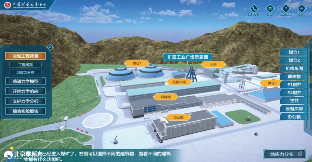 本项目虚拟仿真实验教学管理平台以地下复杂结构围岩的稳定性以及支护措施为研究背景,结合力学理论、计算机仿真技术、多媒体技术和网络技术,采用面向服务的软件架构开发。在巷道开挖支护设计原则的指导下,它集实物仿真、创新设计、智能指导、虚拟实验结果自动批改和教学规范制度于一体。该平台创建地下围岩所处的地应力环境,充分体现地下工程区别于地上工程的力学特征,让学生在虚拟环境的沉浸式场景下,直观感受巷道开挖的现场工作环境,感受围岩和支护结构的力学响应规律。它能够实现开采中地下复杂结构工程围岩变形、应力、能量以及损伤断裂行为仿真分析,成为具有良好规范化、自主性交互性和可扩展性的虚拟实验教学平台。