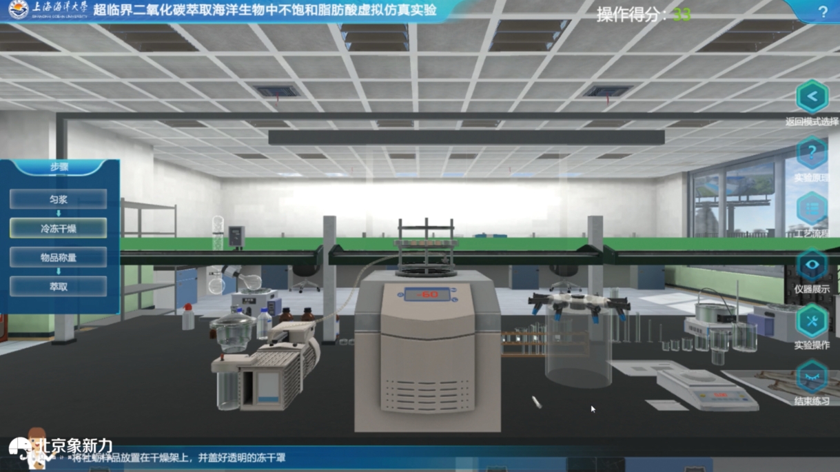 超临界二氧化碳萃取海洋生物中不饱和脂肪酸虚拟仿真软件拥有广泛的应用客户,其中包括上海海洋大学和上海理工大学等知名高校。这款软件采用三维虚拟仿真技术,模拟了真实的实验场景。它涵盖了实验室的全景漫游,让使用者仿佛身临其境;还包括所有设备和理论知识的认知学习,帮助相关人员深入了解萃取过程所涉及的各种知识;同时具备重要设备的模拟操作和参数显示功能,以及萃取过程的模拟和自动控制装置的模拟,是一个可交互的三维可视化的萃取工艺过程仿真软件。该实验是对使用超临界二氧化碳工艺来萃取海洋生物中的不饱和脂肪酸的模拟和演绎,将相关从业人员抽象性相关性分析的研究具体化、可视化、直观化,使得复杂的萃取过程变得更加清晰易懂。