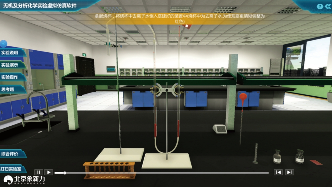 对真实实验室进行完整的三维建模,学生除了进行实验内容操作,还要学习实验室安全及规范,培养学生良好的实验习惯。这也是实验室阿伏伽德罗常数测定技巧的一部分。