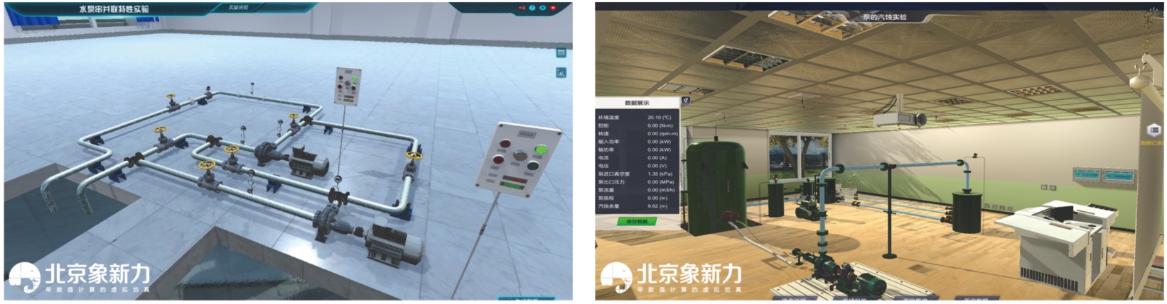产品实验设备、实验器材、测量表计等装置均与实际实验室相符。泵、风机、阀门、管道的外观与真实设备一致,设备运行时伴随有设备转动、震动、指示灯开启等现象也与现实一致。实验中对设备的操作也与真实操作相一致,如开关阀门,启停电气设备等操作。
